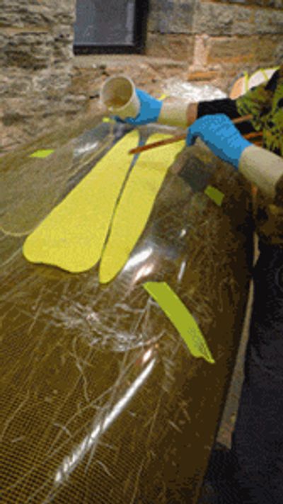 When the stems of your canoe show wear from scraping over shoals and shallows, extend its life by applying Kevlar skid plates. If a Royalex canoe, with a vinyl-ABS-foam hull, it's time for skids plates when the lighter colored ABS material, or foam core, shows. If a Kevlar, fiberglass or high-tech composite hull, exposed fabric on the bow or stern means it's time.