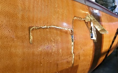 If your canoe has a composite hull (Kevlar, fiberglass, carbon, etc.), exposed fabric on the bow or stern means it's time.